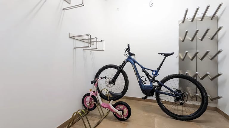 Nach einem erlebnisreichen Mountainbike-Tag verstauen Sie Ihr Bike und Ihre Ausrüstung sicher im Abstellraum mit praktischer Trockenmöglichkeit für Kleidung und Schuhe.
