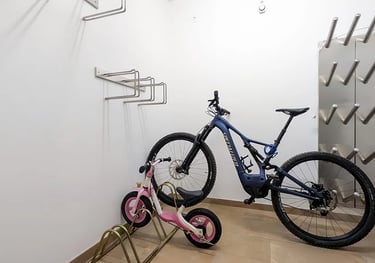 Dopo una giornata in mountain bike, potrete riporre in sicurezza bici e attrezzatura nel deposito biciclette con sistema di asciugatura per abbigliamento e scarpe.