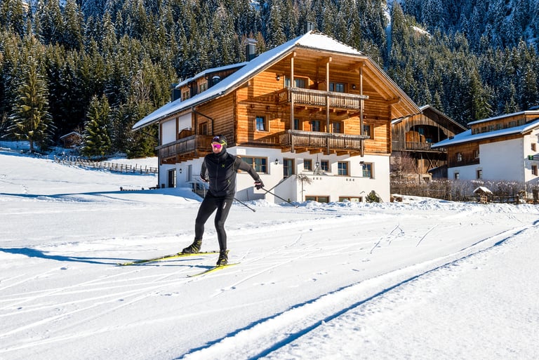 Punto di partenza ideale vicino alle Dolomiti e al Plan de Corones – accesso diretto alle piste da fondo, sentieri per escursioni invernali nelle immediate vicinanze e una quiete rigenerante, lontano dal turismo di massa.