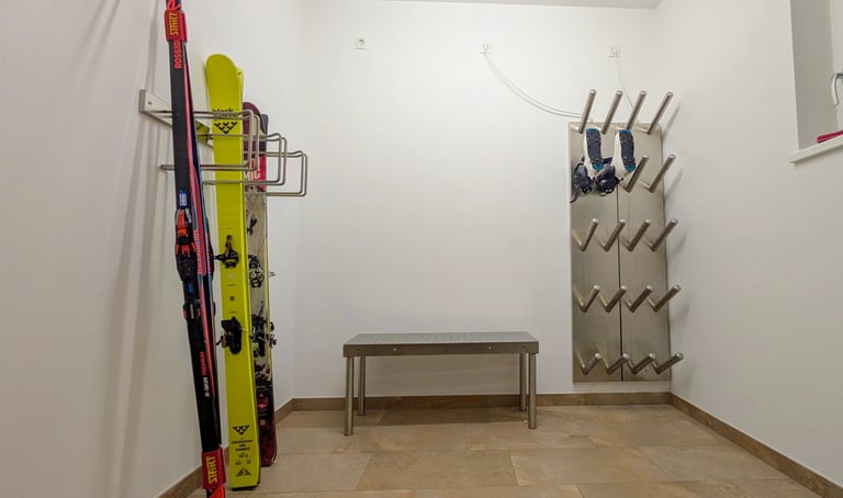 Nach einem Skitag verstauen Sie Ihre Ausrüstung sicher im Skiraum mit Skischuhtrockner. Ein kostenloser Wasch- und Bügelraum steht ebenfalls zur Verfügung.