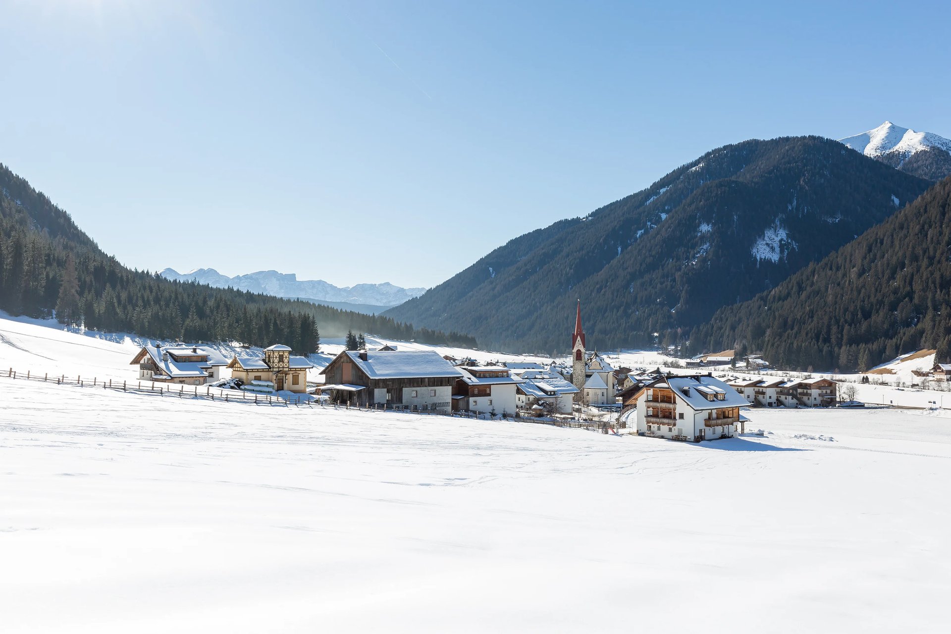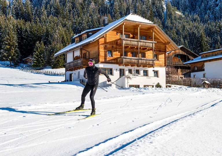 Punto di partenza ideale vicino alle Dolomiti e al Plan de Corones – accesso diretto alle piste da fondo, sentieri per escursioni invernali nelle immediate vicinanze e una quiete rigenerante, lontano dal turismo di massa.
